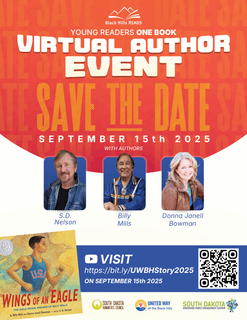 Each year, Black Hills Reads partners with the SD Humanities Council and other local organizations to bring students across the Black Hills the selected ‘Young Readers One Book’ (YROB) for the current year.